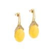 Unique earrings with a natural amber ball, made of gold-plated 925 silver, decorated with shiny zircons.