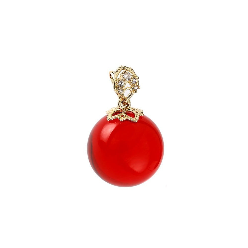 Unikatowa, zawieszka z naturalnego bursztynu bałtyckiego w kolorze wiśni, oprawiona w 14 karatowe złoto z cyrkonią